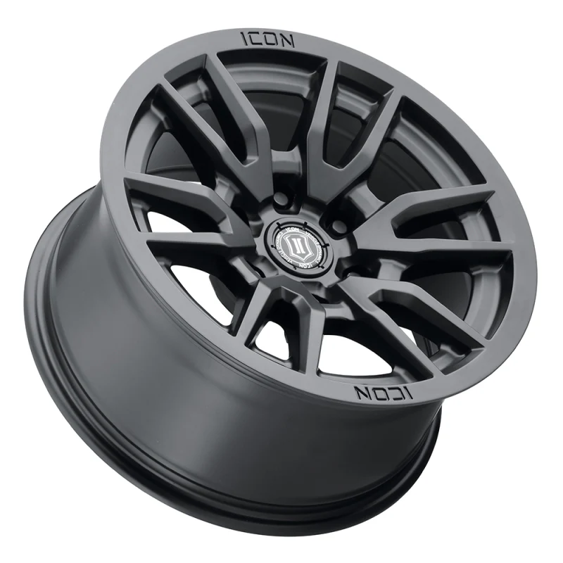 Bring a bold new look to your ride with the all-new ICON Alloys VECTOR 6! Combining sharp lines, a concave spoke design, and "ICON-optimized" dimensions, these wheels will increase both the form and function of your Jeep, truck, or SUV. Staying true to the ICON Alloys approach, the VECTOR 6 has been engineered to maximize caliper clearance and optimize wheel position for un-hindered suspension travel and steering function. Backspace dimensions and wheel offset have been strategically developed to reduce scrub radius, improving all-around handling and ride quality and making a set of these wheels the perfect complement to an ICON Vehicle Dynamics suspension system.
